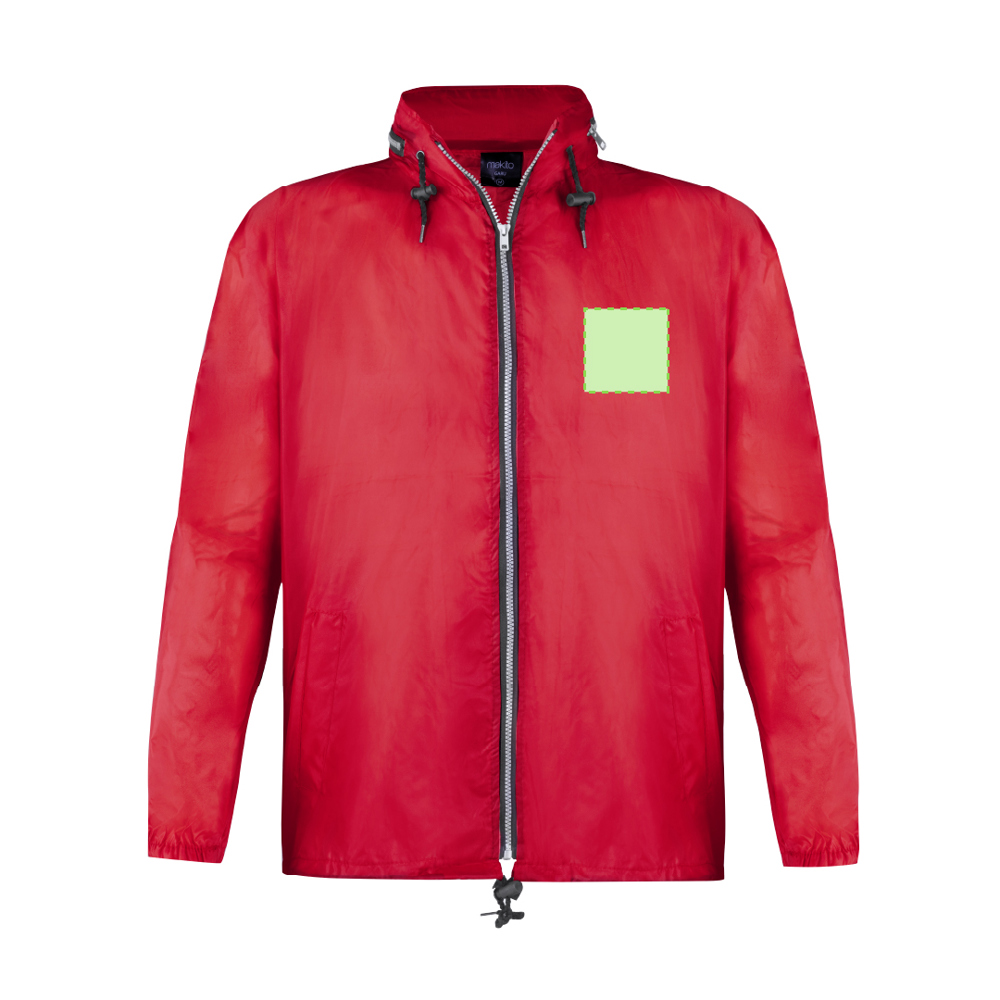 Regenjas in resistent polyester 190T. Capouchon met verstelveters, geïntegreerd in het ritsvak van de hals. Hoofdsluiting met rits, inclusief een heupkoord met verstelmogelijkheden. Verkrijgbaar in een groot aantal kleuren en in de maten M, L, XL, XXL.